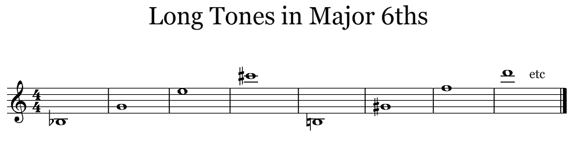 Instead of playing your long tones in a series of half steps (Bb-B-C-C#-D etc), how about playing them in other intervals? What about, for example, a series of major 6ths? (see example below)