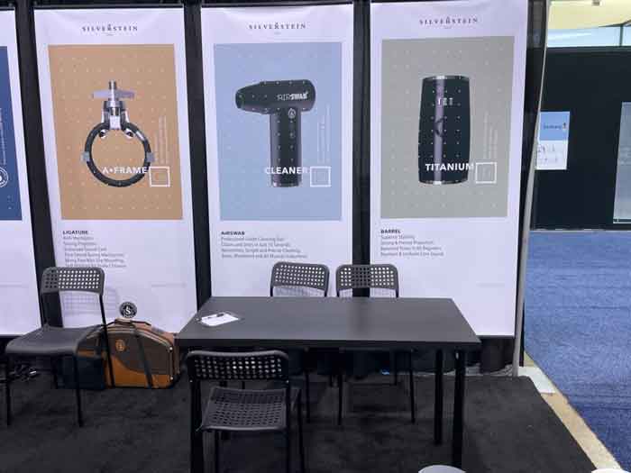 There was quite an array of products at the Silverstein booth this year. The Airswab for cleaning your saxophone and Titanium barrel for clarinet, I believe, were some of the newer products Silverstein was showcasing in addition to updates to their synthetic Alta reed.