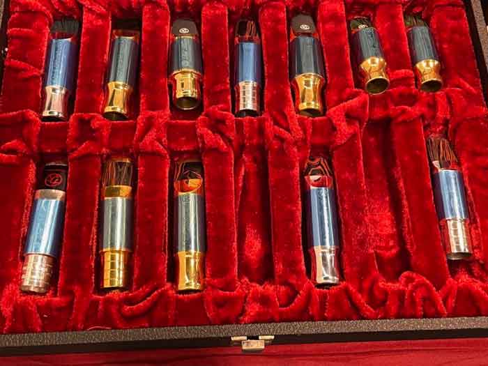 Ted let me try each of these mouthpieces in the traditional hard rubber as well as marbled finish. In addition, he did have 7 tip openings. In the past I tried a 7*, which played great, but I think the 7 tip opening is the facing for me.