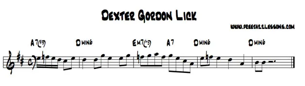 Pay special attention the nice rhythmic ending Dexter plays on this lick. He ends his line using 2 eighth notes on beats 1 and the” & of 1″. This is a classic bebop way of ending a phrase. It’s a very strong rhythmic resolution and it grooves!
