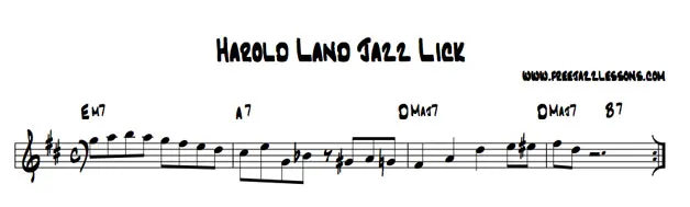 Harold lands on the 3rd of every chord on beat. Additionally, almost every downbeat in this lick contains a strong chord tone. That’s why even if you don’t play the piano chords behind this lick you can still hear the changes.