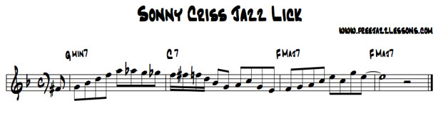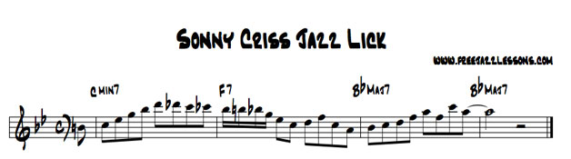 Practice Tip: Take an hour and practice improvising over your favorite jazz standard. Use the 2 descending chromatics approach pattern that Sonny uses on this lick. So, in other words practice landing on a variety of chord tones from 2 chromatics above.